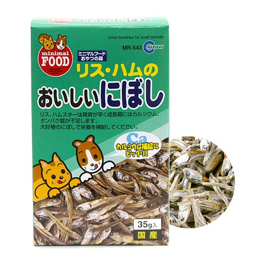 カルシウム補給にピッタリ!リス・ハムのおいしいにぼし 35g価格: 227円レビュー評価: 4.0 レビュー数:1 メーカー:マルカン品番:MR?543リス・ハムのおいしいにぼし 35gカルシウム補給に最適! リス・ハムスターは発育が早く成長期にはカルシウム、たんぱく質が不足します。 大好物のにぼしで栄養補給をしてください。 にぼしは骨までまで食べられるおいしいにぼしです 【与え方】 ●ペット用のおやつとして与えてください。 ●本品は主食ではありませんので、必ず他のフードと合わせて与えてください。 ●与える量はペットの年齢・体重・運動量・体調に合わせて様子を見ながら調整してください。【保存方法】 お買い上げ後は直射日光・高温多湿な場所を避けて常温(25℃以上)で保存し、開封後は袋の口を閉じて早めにお与えく |